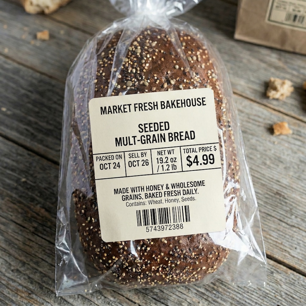 LabelSwift provides high-quality direct thermal and thermal transfer labels specifically designed to meet the fast-paced needs of bakeries. Whether printing ingredient lists, nutrition facts, sell-by dates, lot codes, or pricing, our labels deliver sharp, reliable print for both short runs and high-volume production. Direct thermal labels are ideal for short shelf-life items like fresh pastries and breads, offering a cost-effective solution, while thermal transfer labels provide enhanced durability for frozen goods or extended storage.