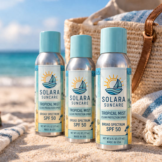 Your sunscreen label should communicate your brand’s personality and the benefits of your product. Whether you opt for bold, vibrant designs or minimalist aesthetics, the label serves as a key marketing tool. Incorporating elements like your brand logo, product name, key ingredients, and usage instructions can help consumers make informed purchasing decisions. Additionally, considering finishes such as matte, gloss, or soft touch laminate can enhance the tactile experience and visual appeal of your product while also providing moisture and abrasion protection. UV-cured gloss and matte finishes offer similar visual appeal without the added label thickness.